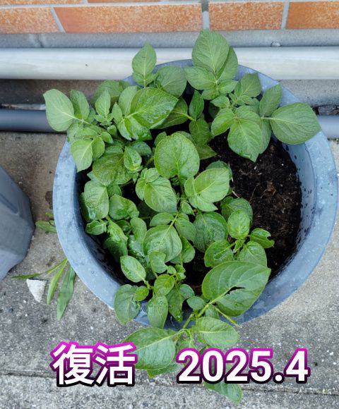 昨年10月末ジャガイモの皮を植木鉢に埋めました