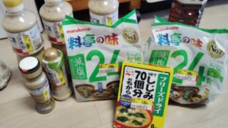退職後家計 半額食品ゲット、ごまドレッシング&味噌汁 など